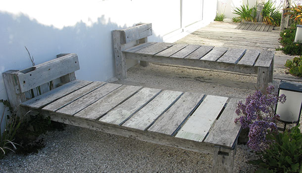 Similarly, excess timber was used in the construction of the outdoor shower, and as a walkway to the beach.